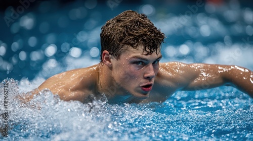 dynamic, image, young, man, swimmer, motion, swimming, freestyle, stroke, pool, training, concept, professional, sport, health, endurance, strength, active, lifestyle