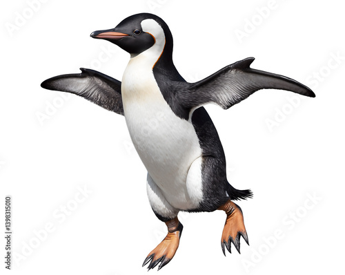 penguin, bird, animal, jumping, isolated, wildlife, antarctic, flightless, nature, avian, wing, feather, aquatic, seabird, cold, polar, cute, fauna, comical, funny, adorable, cheerful, happy, lively, vibrant, animated, energetic, dynamic, playful, character, creature, pose, posture, action, movement, outdoors, ornithology, zoology, tropical, white, black, orange, foot