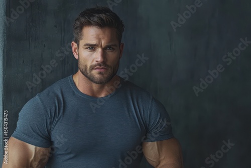 Dynamic Portrait of a Muscular Male Fitness Model Showcasing Strength Near a Dramatic Dark Background