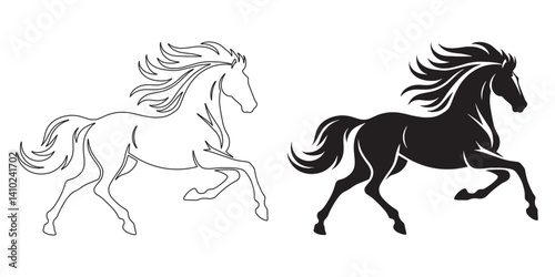 Dynamic running horse silhouette – powerful vector for equestrian art – horse silhouette – horse vector – horse illustration – horse outline – horse icon – horse line art