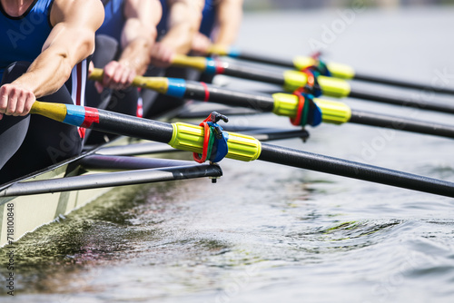 Dynamic Team Rowing - Athletes and Oars on the Water