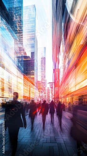 Dynamic Urban Commuters Amidst Vibrant Motion and Modern Architecture