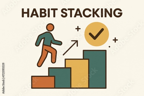 Dynamic visual representation of habit stacking concepts illustrating personal growth through step progression and commitment to self-improvement techniques that promote productivity and