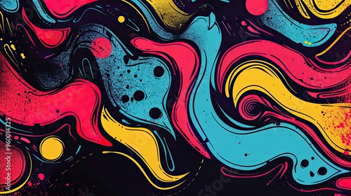Dynamic wallpaper with swirling shapes vibrant colors and bold black outlines