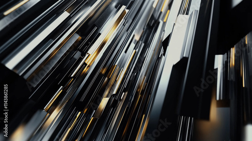 Dynamische goldene Fragmente explodieren auf schwarzem Grund. Leuchtende Partikel fliegen strahlenförmig auseinander in dramatischer Bewegung