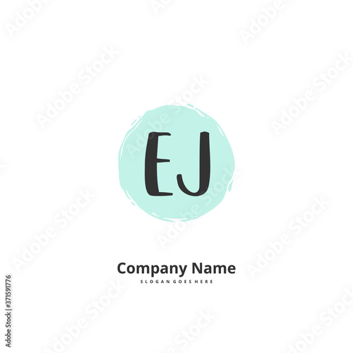 E J EJ Initial handwriting and signature logo design with circle. Beautiful design handwritten logo for fashion, team, wedding, luxury logo.