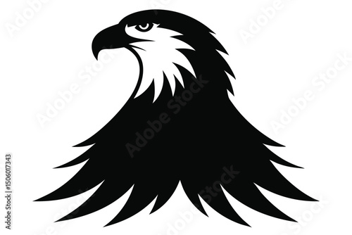 eagle head, black silhouette, sharp beak, intense gaze, majestic, powerful, vector illustration