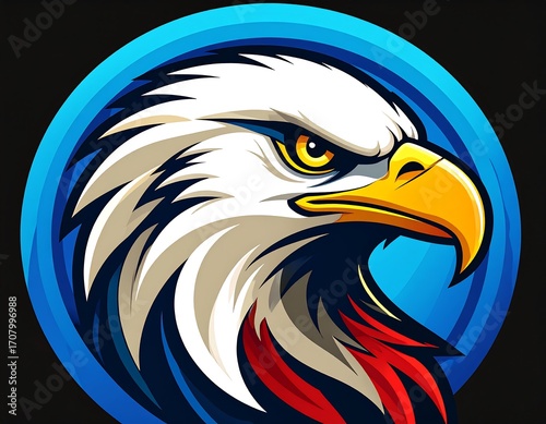 eagle, bird, head, profile, wildlife, animal, vector, graphic, illustration, design, art, logotype, mascot, emblem, proud, powerful, strong, nature, fierce, american, freedom, patriotic, symbol, digital, artwork