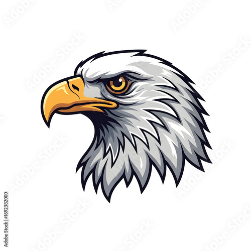 eagle, head, illustration, white, background, profile, drawing, art, design, artwork, isolated, animal, bird, predator, avian, feather, beak, eye, yellow, grey, graphic, stylised, detailed, closeup, portrait, symbol, crest, wildlife, digital, bold, elegant, simple, iconic, logotype, mascot, clip art, freedom, power, strength, confident, fierce, sharp, looking, representation, ornamental, element, decorative, creative