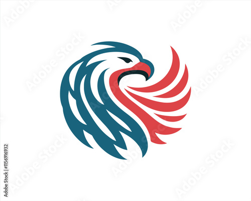 Eagle logo design vector illustration in American flag color. American Eagle icon logo template.