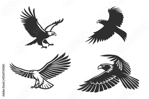bird, vector, silhouette, eagle, flying, wing, animal, illustration, nature, feather, hawk, black, bird, tattoo, dove, wing, fly, design, hawk, symbol, flight, set, art, wildlife, crow