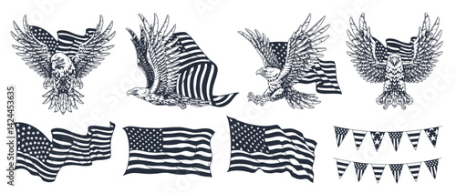 eagle, flag, patriotism, artwork, symbolism, america, national, pride, design, flight, celebration, freedom, independence, creativity, illustration, graphic, heritage, cultural, banner, display, wildlife, united, state, vector, craft, party, emblem, aviation, texture, colours, abstract, decoration, style, art, festivity, pattern, strong, loyalty, hope, nature, spirit, graphic, insignia, element, event
