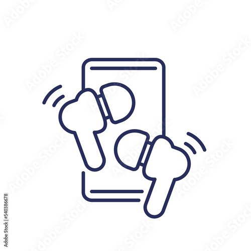 earbud, icon, wireless, earphones, earphones, audio, music, bluetooth, line, connect, phone, smart, sound, vector, media, headset, volume, musical, listen, new, outline, pair, electrical