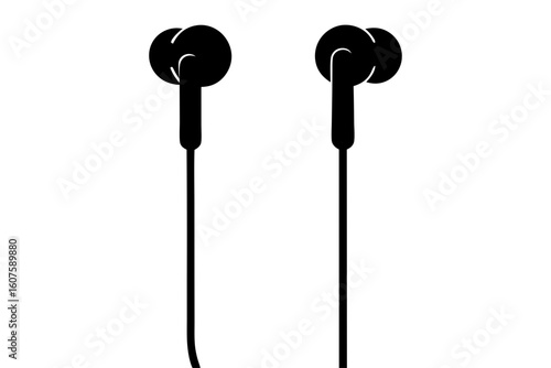 earphones, music, sound, audio, black, vector, device, listen, technology, portable, accessory, entertainment, electronic, wired, earbud, stereo, earphones, design, element, shape, isolated, object, graphic, simple, style, symbol, clip art, silhouette, icon, clean