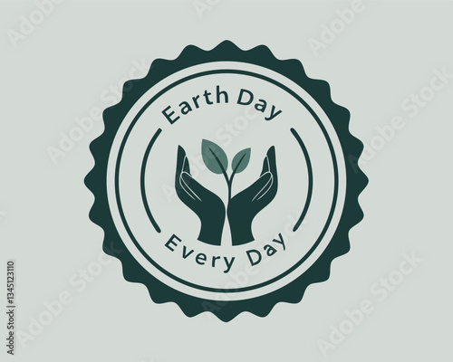 Earth Day Every Day Emblem: Hands Holding Seedling for Sustainable Living and Environmental Care.