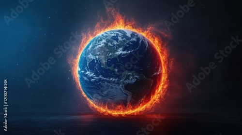 earth, globe, fire, flames, climate, change, environment, crisis, blue, planet, heat, global, warming, darkness, nature, energy, disaster, catastrophic, wildfire, smoke, impact, survival, high-coloured, creative, digital, illustration, ocean, scorched, burning, atmosphere, temperature, pollution, threat, danger, awareness, sustainability, landscape, resource, humanity, visual, art, concept, science, symbol