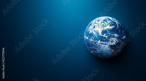 Earth view in space against dark blue background showing North and South America continents and realistic cloud cover