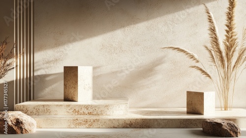 Earthy Elegance - 3D Eco Backdrop with Natural Textures and Clean Surfaces for Display Needs