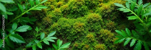 Earthy moss texture amidst delicate ferns greenery, abstract composition, natural, leafy, foliage