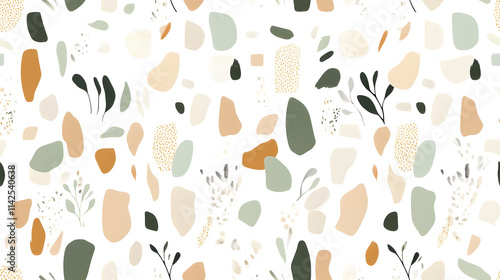 Earthy pastel seamless pattern with abstract shapes and soft colors