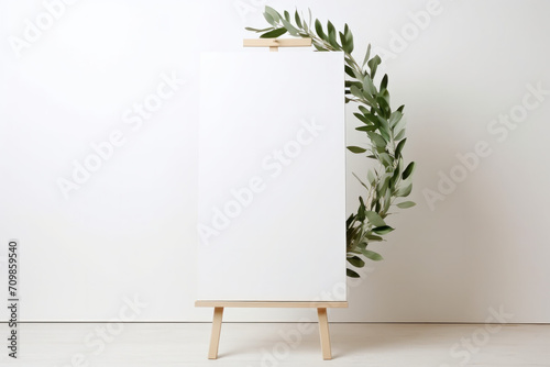 easel with blank canvas and green florals