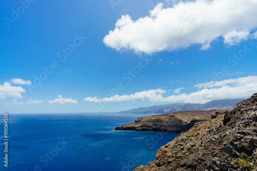 cliff, madeira, rock, mountain, sea, coast, landscape, ocean, atlantic, blue, island, nature, scenic, sky, water, east, shore, view, stone, cloud, edge, rocky, brown, colours, hill, lorenzo, panorama, tropical, scenery, seacoast, coastline, portugal, travel, summer, horizon, orange, scene, sunny, volcanic, high, formation, nobody, outside, skyline, summer