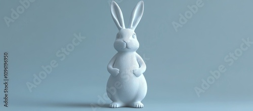 Easter Bunny figurine in a standing pose against a soft blue background perfect for spring holiday themes.