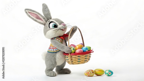 easter bunny, rabbit, cartoon, easter egg, basket, cute, festive, holiday, spring, cheerful, happy, fun, playful, whimsical, digital artwork, illustration, design, graphic, modern, contemporary, artistic, creative, conceptual, surreal, dreamlike, aethereal, mystical, magical, texture, pattern, background, wallpaper, bright, colourful