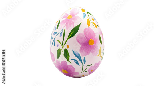 Easter egg painted with floral patterns, Transparent background, PNG file