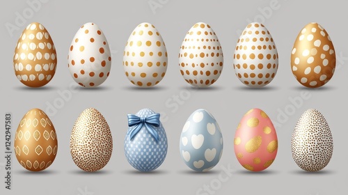 Easter eggs collection - decorated colorful eggs with polka dots, stripes and patterns