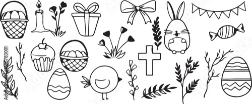 Easter Icons, Spring Symbols, Holiday Patterns, Festive Designs, Black White Art, Renewal Graphics, Easter Elements, Holiday Icons, Spring Icons, Vector Art, Celebration Symbols, Easter Patterns, Holi