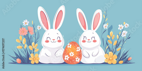 easter, rabbit, rabbit, spring, egg, egg, cartoon, illustration, vector, hare, white, blue, light, flower, flower, happy, happy easter, background, banner, frame, baby, cute, holiday, animal, fun, art, card, pet, ear, drawing, design, animal, pet, love, festive, easter rabbit, decorated, colours, colourful, colours, 2, 2, rabbit, rabbit, grass