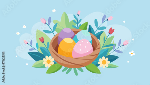 easter, nest, colourful, egg, floral, arrangement, minimalistic, spring, design, festive, holiday, illustration, cute, cheerful, whimsical, playful, vibrant, seasonal, pattern, nature, greeting, card, tradition, celebration, joyful, fun, creative, modern, decor, childlike, friendly, light, pastel, bright, trendy, joy, innocence, soft, fresh, decorative, art, springtime