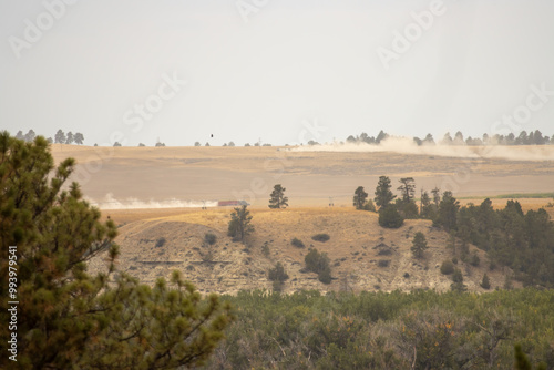 landscape, sky, tree, nature, desert, grass, field, tree, fog, cloud, morning, sand, mountain, hill, sunrise, blue, sunset, summer, panorama, mist, horizon, dry