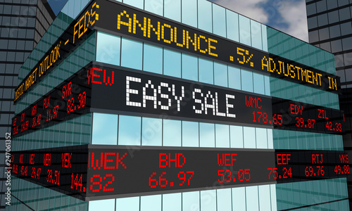 Easy Sale IPO Stock Market Ticker Wall Street Building 3d Illustration