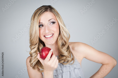 woman, apple, health, food, low-fat, overweight, take off, model, vitamin, fruit, forbidden, fruit, paradise, munch, food, natural, attractive, sexy, shiny, genetic engineering, appealing, gift, give, smile, blond, hair, healthy, live, happy, luck