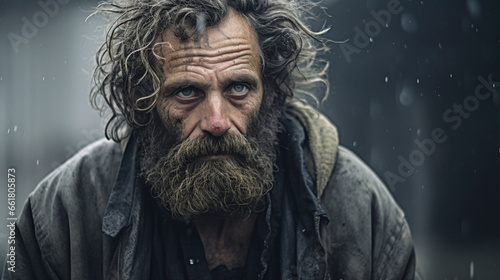 homeless, portrait, closeup, desperation, poverty, hardship, survival, streetlife, urban, suffering, empathy, humanity, compassion, resilience, urban living, dignity, overcoming, rebuilding, transformation, healing, coping, adversity, striving, endurance, determination, generative, ai, face, dark, people, guy, man