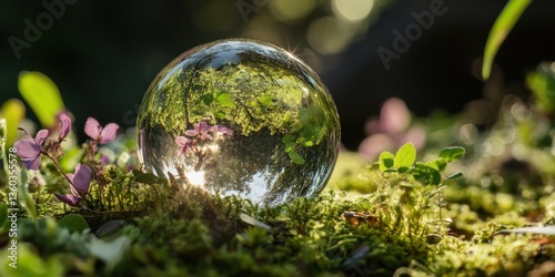 globe, ecosystem, environment, sustainability, conservation, nature, environmental, glasses, moss, wildflower, dew, green, eco, friendly, climate, biodiversity, preservation, miniature, transparency, natural, earth, macro, botanical, scientific, creative, inspiring, wellness, mindfulness, regenerative, innovation, digital, marketing, branding, content, education, awareness, design, ecological, pure, tranquil, delicate