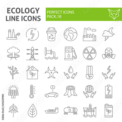 Ecology thin line icon set, eco symbols collection, vector sketches, logo illustrations, energy signs linear pictograms package isolated on a white background.