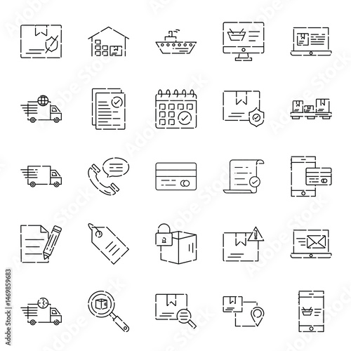 Ecommerce order icons delivery shopping