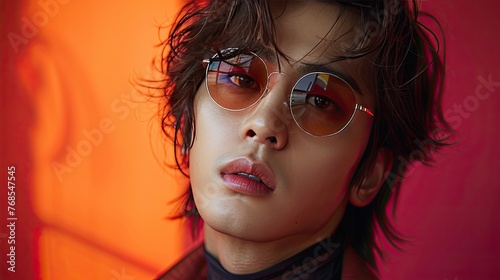 edgy, intense, dramatic, red, goggles, fashion, style, confident, bold, young adult, cool, urban, allure, trend, contemporary, portrait, eyewear, stylish, innovative, conceptual, artistic, statement, vibrant, daring, individuality, power, emotion, vogue, pop, city life, effective, lifestyle, personality, passionate, fiery, pose, look
