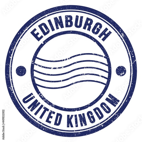 EDINBURGH - UNITED KINGDOM, words written on blue postal stamp