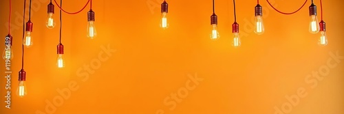 Edison bulb aesthetic colorful light bulbs green orange blue vibrant display soft blue background playful touch space, vibrant, orange, background