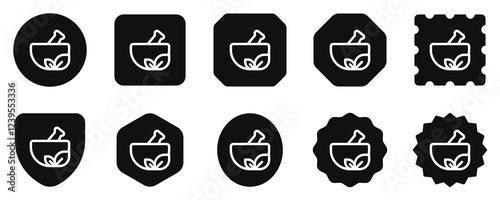 icon, mortar, pestle, herbal medicine, pharmacy, alternative medicine, botanical, traditional medicine, wellness, relaxation, health, beauty, rejuvenation, treatment, therapy, holistic, center, retreat, vector, line, badge, frame, container, square, rounded, black, fill, solid, navigation, interface, app, web, application, website, menu, buttons, symbol, object, pictogram, illustration, white