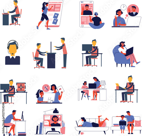 office, work, remote, laptop, productivity, communication, online, team, employee, business, flat, vector, icon, presentation, cyberspace, electronic mail, desk, headset, wi-fi, file, folder, organiser, note, to do, keyboard, mouse, workplace, virtual, document, task, planning, workflow, management, collaboration