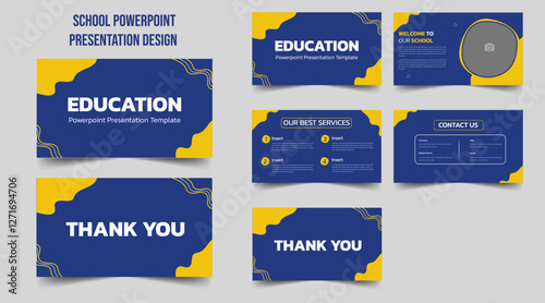 Education Design School PowerPoint presentation slide template. Utilize a contemporary background for a keynote presentation, brochure design, website slider, landing page, or annual report.