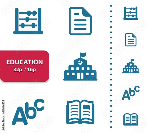 education, school, icon, college, high school, university, library, abacus, file, page, letter, essay, letter, alphabet, book, textbook, manual, schoolbook, vector, symbol