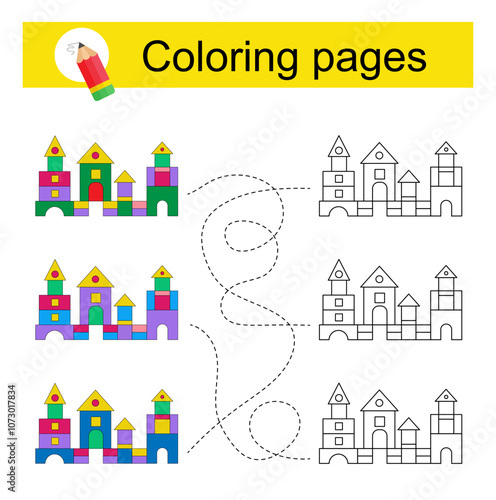 drawing, children, children, preschool, vector, simple, picture, funny, concept, illustration, education, children, happy, cute, children, fun, cartoon, flat, draw, colouring, activity, activity, colourful, educational, game, handwriting, kindergarten, logic, match, labyrinth, modern, many-coloured, page, page, practice, printable, puzzle, riddle, school, set, task, castle
