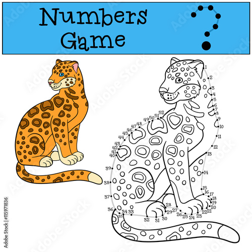 Educational game: Numbers game with contour. Cute jaguar smiles.