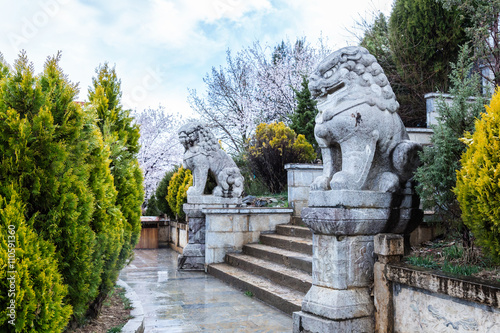 lion, design, china, solid, stone, gate, sculpture, oriental, ornament, chinese, rock, ball, statue, culture, fierce, entrance, decor, old, orient, traditional, carved, asia, doorstep, earth, protect, face, temple, religion, art, antique, artistic, ancient, ornate, beautiful, cracked, weathered, eye, asian